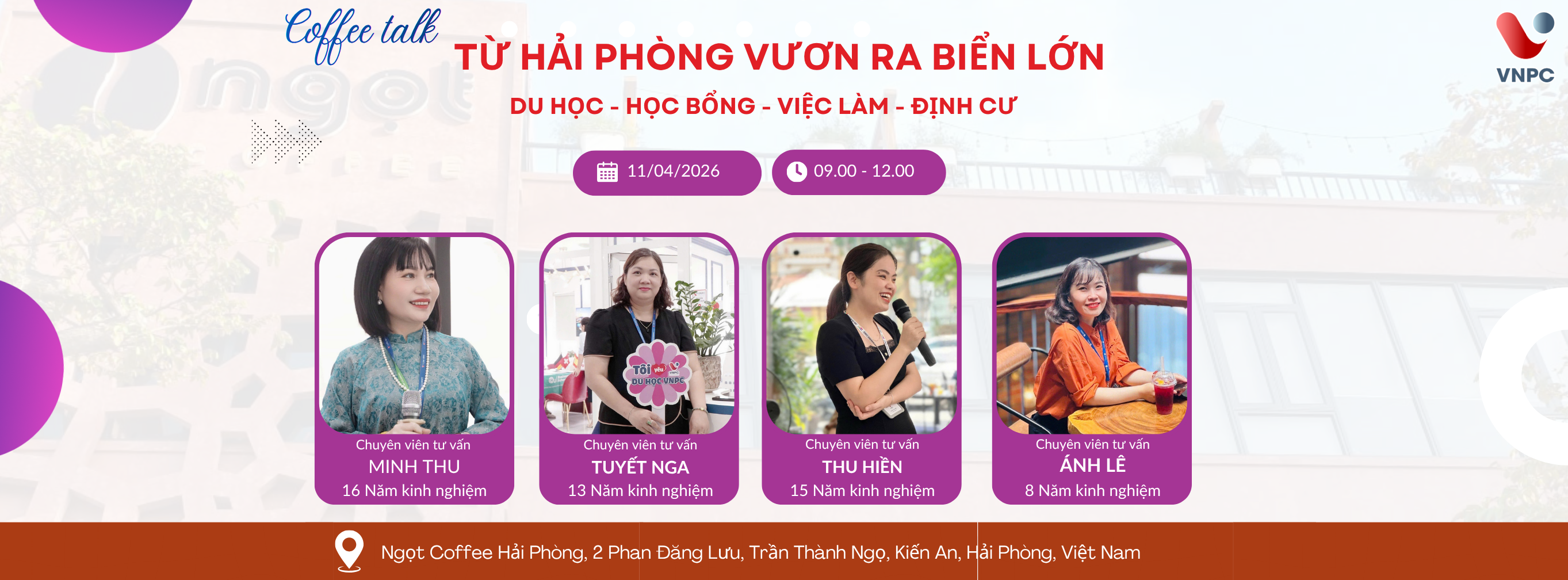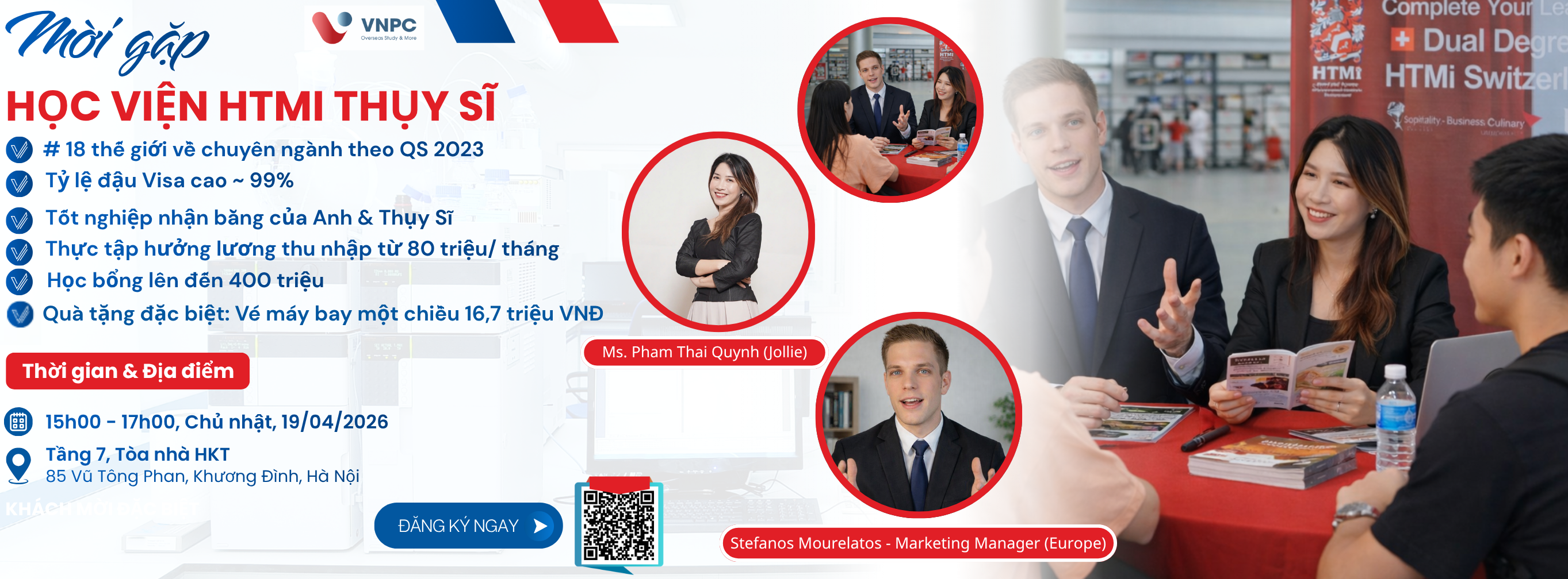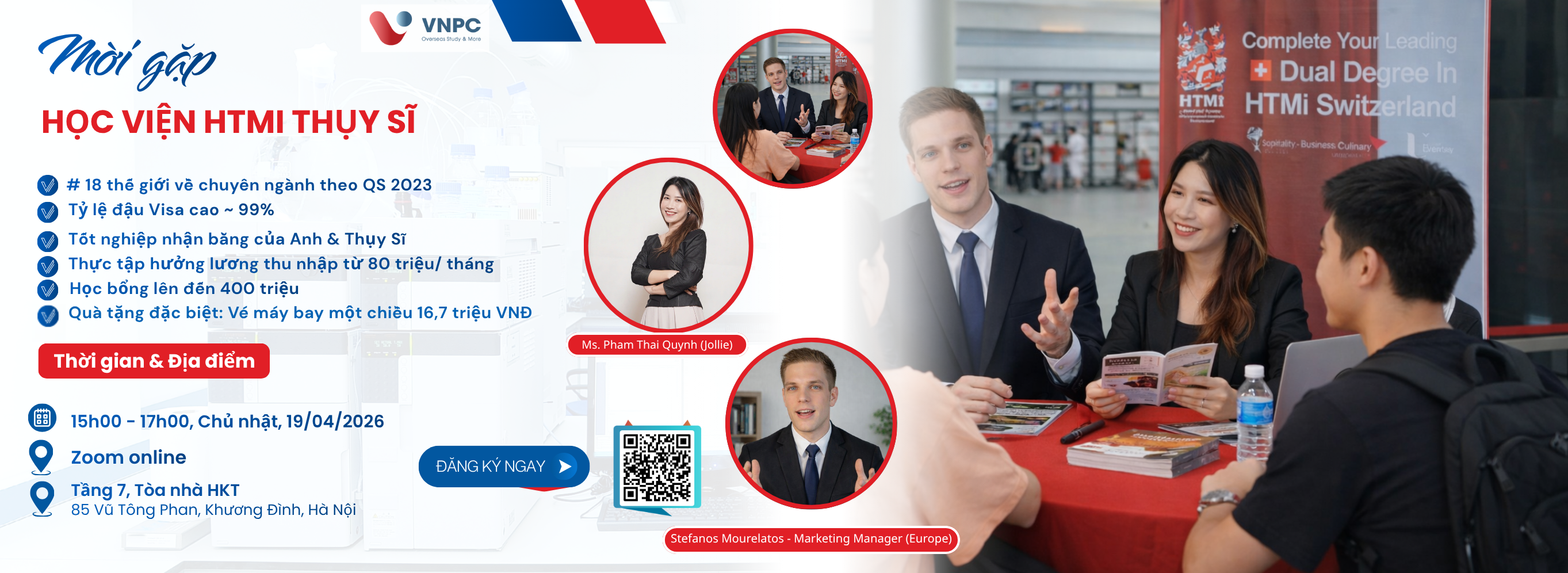 Thành lập năm 2006, với 20 năm kinh nghiệm tư vấn du học cùng mạng lưới đối tác rộng khắp thế giới, Tư vấn du học VNPC đã và đang là một trong những đơn vị đồng hành cùng các bạn trẻ trên chặng đường chinh phục giấc mơ du học. Cho đến hiện tại, VNPC là đối tác đáng tin cậy của rất nhiều trường đại học và cao đẳng ở các nước Úc, Thụy Sỹ, Anh, Mỹ, Canada, Đức, New Zealand, Síp, Phần Lan, Hà Lan, Tây Ban Nha, Singapore, Hàn Quốc, Nhật Bản, Trung Quốc, Đài Loan .... Chúng tôi cam kết mang đến cho Quý khách hàng dịch vụ toàn diện, đáng tin cậy và chất lượng. Các dịch vụ tư vấn, xử lý hồ sơ du học nhanh chóng với thông tin chi phí minh bạch và tỷ lệ đậu visa cao được thực hiện bởi đội ngũ chuyên viên chuyên môn cao, giàu kinh nghiệm và nhiệt tình hết mình