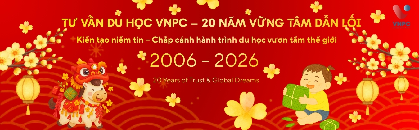 Thành lập năm 2006, với 20 năm kinh nghiệm tư vấn du học cùng mạng lưới đối tác rộng khắp thế giới, Tư vấn du học VNPC đã và đang là một trong những đơn vị đồng hành cùng các bạn trẻ trên chặng đường chinh phục giấc mơ du học. Cho đến hiện tại, VNPC là đối tác đáng tin cậy của rất nhiều trường đại học và cao đẳng ở các nước Úc, Thụy Sỹ, Anh, Mỹ, Canada, Đức, New Zealand, Síp, Phần Lan, Hà Lan, Tây Ban Nha, Singapore, Hàn Quốc, Nhật Bản, Trung Quốc, Đài Loan .... Chúng tôi cam kết mang đến cho Quý khách hàng dịch vụ toàn diện, đáng tin cậy và chất lượng. Các dịch vụ tư vấn, xử lý hồ sơ du học nhanh chóng với thông tin chi phí minh bạch và tỷ lệ đậu visa cao được thực hiện bởi đội ngũ chuyên viên chuyên môn cao, giàu kinh nghiệm và nhiệt tình hết mình