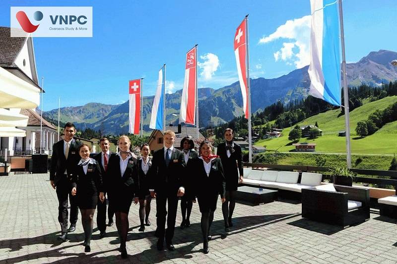 - Thực tập hưởng lương & cơ hội nghề nghiệp toàn cầu: Trải nghiệm thực tập tại các khách sạn 4–5 sao tại Thụy Sĩ và châu Âu với mức thu n+hập lên đến 80 triệu VNĐ/tháng, đồng thời mở rộng mạng lưới quan hệ và tích lũy kinh nghiệm quốc tế.