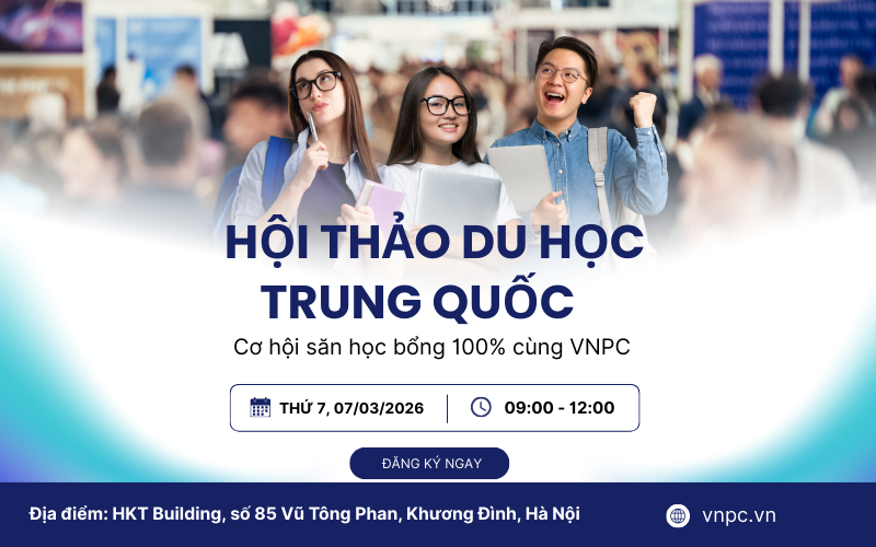 Trong xu thế hội nhập toàn cầu, du học Trung Quốc ngày càng được học sinh, sinh viên Việt Nam quan tâm nhờ chất lượng đào tạo và cơ hội học bổng hấp dẫn. Tuy nhiên, để xây dựng lộ trình hiệu quả, học sinh cần có thông tin chính xác và định hướng rõ ràng ngay từ đầu. Nhằm đồng hành cùng các bạn trên hành trình hiện thực hóa ước mơ du học, VNPC tổ chức Hội thảo Du học Trung Quốc 2026, chương trình tư vấn chuyên sâu giúp lựa chọn đúng trường, đúng ngành và gia tăng cơ hội trúng tuyển.